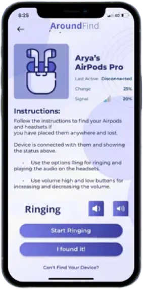 Find your lost airpods with the help of Aroundfind. The Aroundfind helps you find all Bluetooth devices, you have misplaced/lost, in no time. With only a couple of taps, you can locate all your gadgets including airpods, iPad, iPhone, apple watch, wireless headsets, or any other Bluetooth device that you have connected. The AirPods tracker algorithm has been engineered to constantly monitor all your devices so that you don’t lose them ever again!